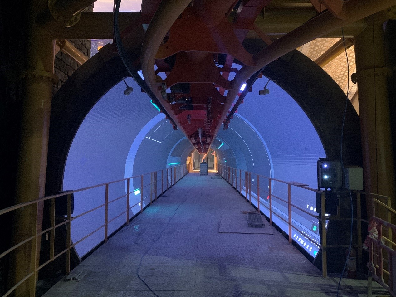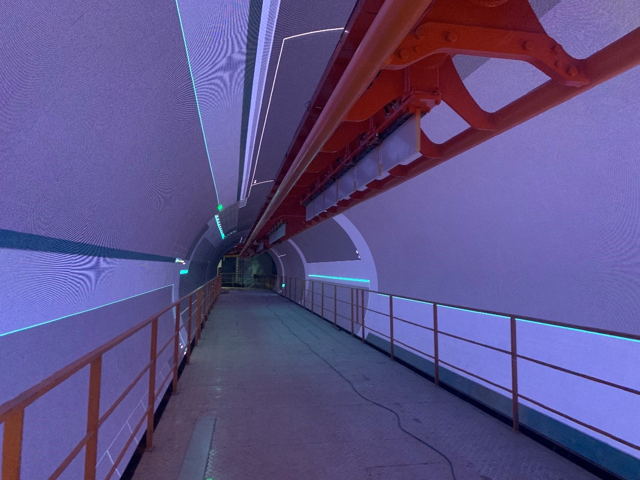 Among them, the tunnel uses a 36-meter fully wrapped LED screen combined with the track to make people immersive through the effect of playing video.