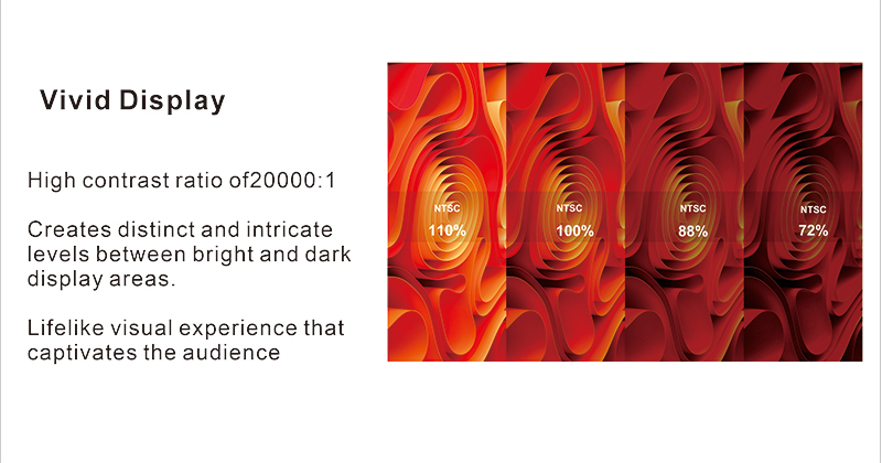 Next, let’s talk about color richness. In many traditional displays, the color expression is often unsatisfactory, and the COB display, with its rich color expression, can present a richer visual experience to everyone and meet everyone‘s color needs in various scenarios. , whether you are watching movies, appreciating pictures, or displaying big data, it can be truly restored and bring you the ultimate visual enjoyment.