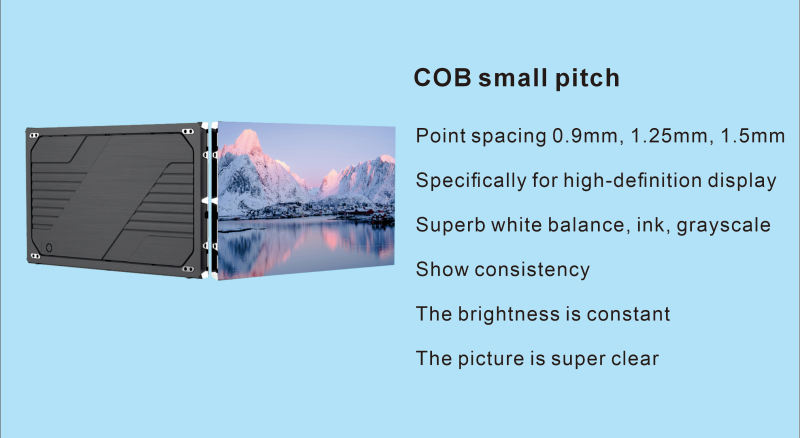 Then, let‘s talk about good stability. A good display screen is inseparable from good stability, and the same is true for COB displays. As a high-quality display screen, COB display screens are strictly controlled in terms of material selection, production technology, and parts. It can maintain stable performance in any environment, allowing you to enjoy a stable and smooth visual experience in different scenarios, ensuring that there will be no faults in long-term use.Secondly, it is energy-saving. COB display screens greatly reduce product power consumption. They are energy-saving electronic products and are favored by many departments and units. Being consumer-centric, we strive to offer the best prices without compromising on quality. Finally we discuss cost effectiveness. Despite the fierce competition in the monitor market, COB monitors always have excellent performance and are presented at more affordable prices, allowing you to enjoy a high-quality visual experience while saving money during your shopping process. Compared with SMDLED, the price of COBLED is not much different, but it is superior in many aspects.