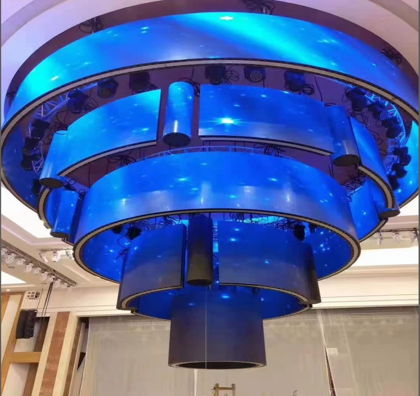 Coupled with the lifting function of the motor, this shopping mall ring-shaped LED display brings a very dynamic experience to customers. The up and down movement of the screen is like a wonderful visual feast, attracting customers‘ attention and making them stop and watch involuntarily. This dynamic display method not only increases the fun of the mall, but also enhances customers‘ sense of participation and interactivity.