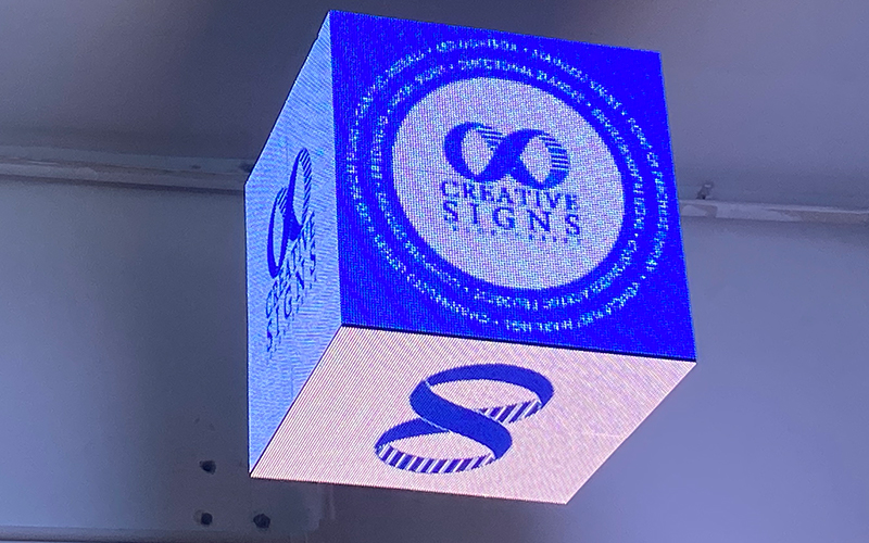 This cubic screen is suspended, like a crystallization of technology and art, attracting people‘s attention. Its delicate display effect and bright colors allow every creative advertisement to be presented in the most perfect manner.
